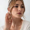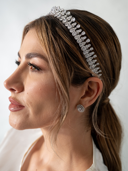 Los aretes Eda con su diseño topo, ofrecen una elegancia moderna. El tamaño moderado de los aretes permite que sean versátiles, siendo la elección perfecta para complementar una variedad de estilos de vestidos de novia sin abrumar el conjunto.