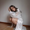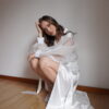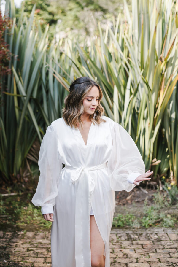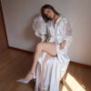 Crystal… elegante y suave con un corte largo y fluido que le da elegancia. Las mangas son Globo, lo que significa que se agrandan ligeramente en la parte superior y se ajustan en los puños, creando un estilo único y relajado. El tejido es liviano, lo que le otorga movimiento al caminar, y su color marfil resalta la frescura y limpieza del diseño. Es una prenda delicada ¡Definitivamente una bata divina!