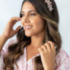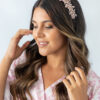 La tiara Eris tiene un tono cálido y romántico que realza tu peinado nupcial con un resplandor suave y elegante. La combinación de oro rosa y circones crea una pieza que es verdaderamente única y exclusiva, perfecta para una novia que busca lo extraordinario.