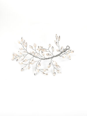 Una increíble tiara tejida a mano, llena de brillo, perlas y cristales, luce radiante en el gran dia con esta tiara de ensueño.  No incluye aretes.